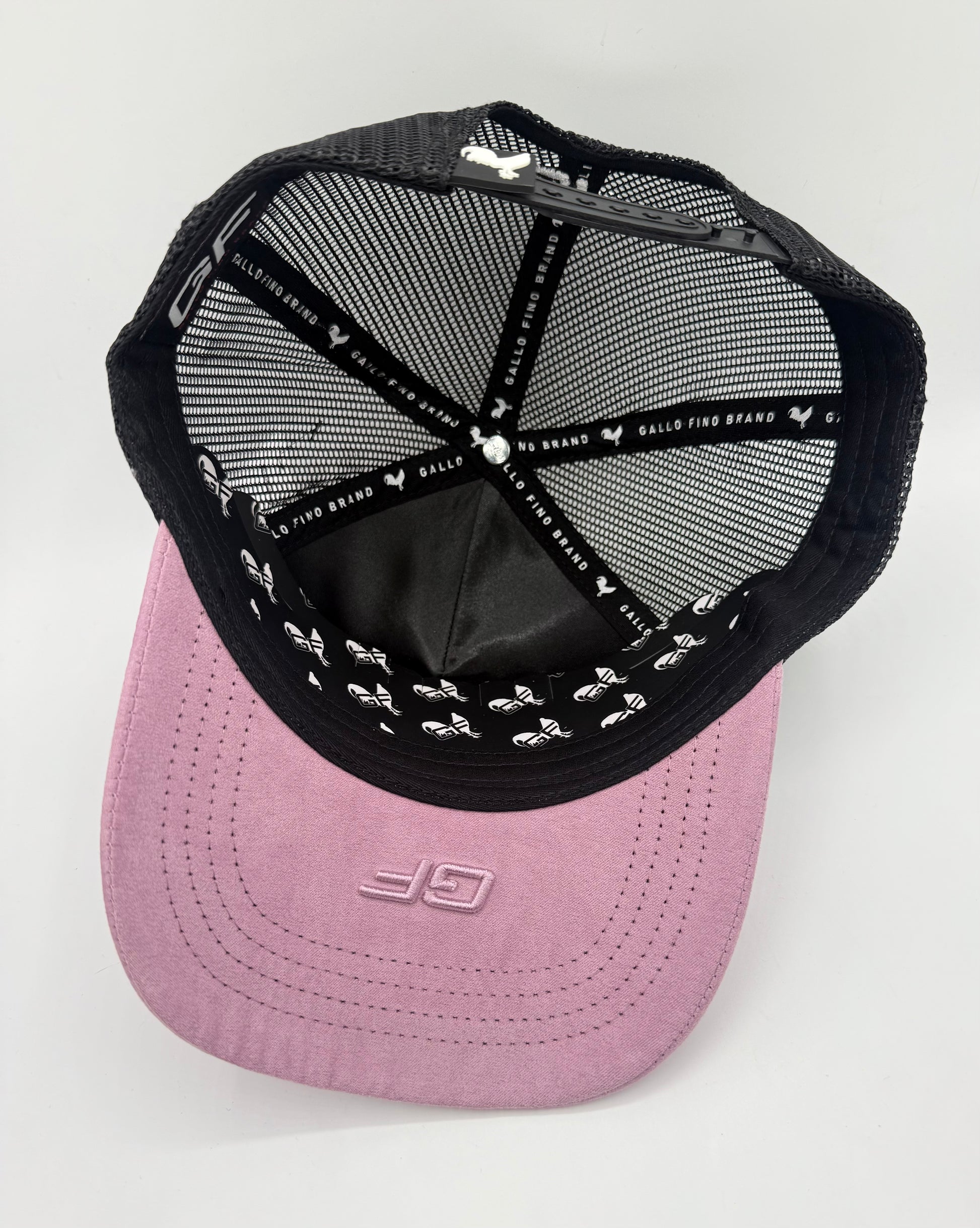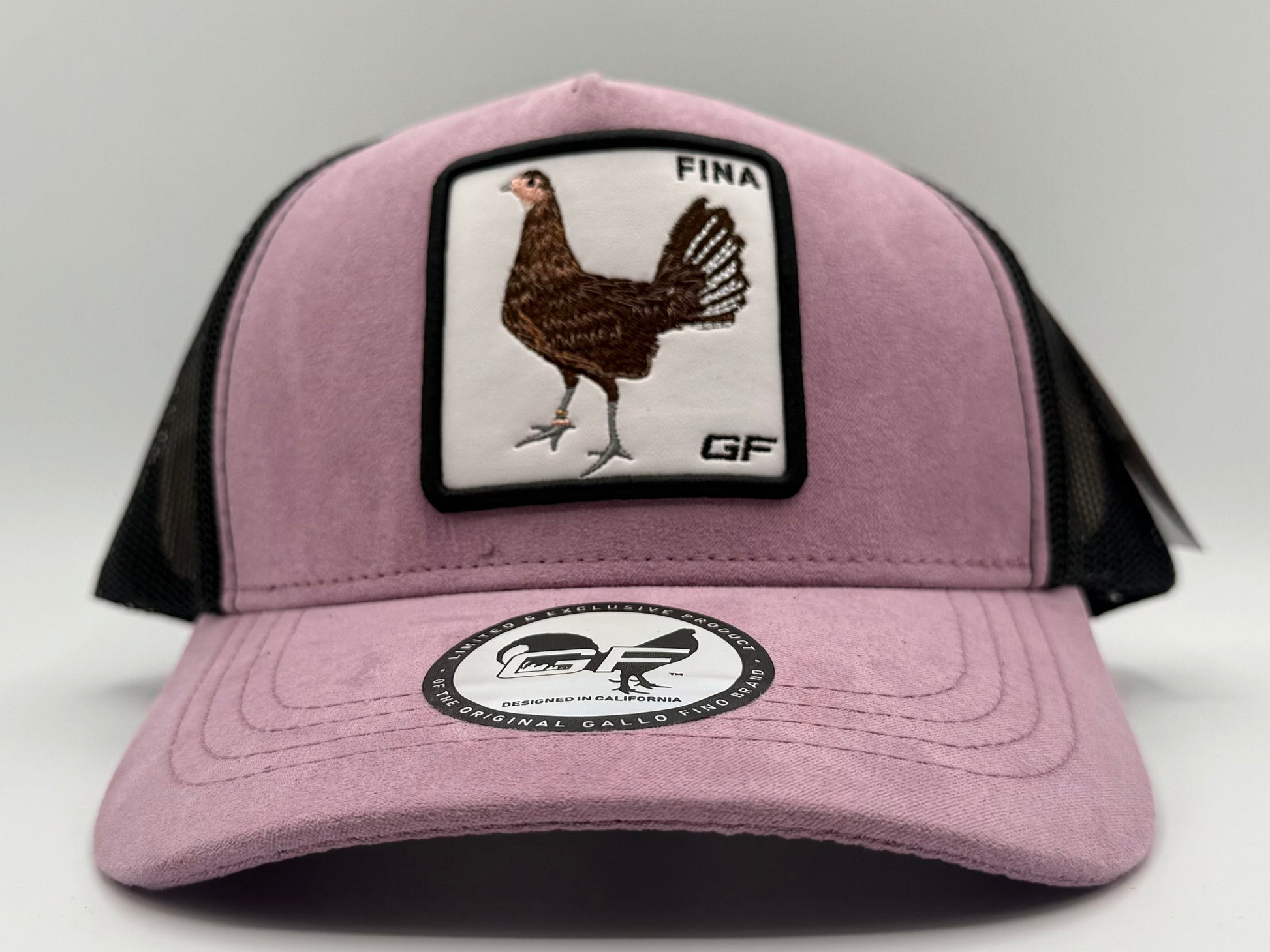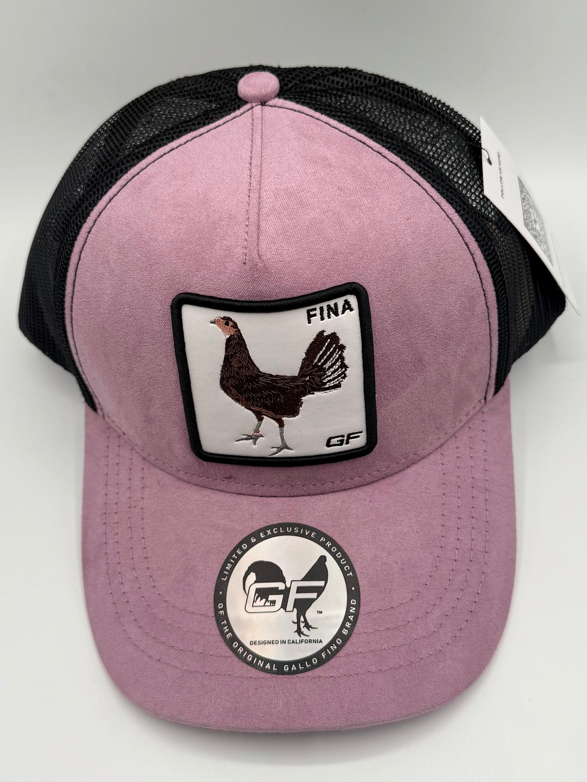 Lavender suede and black mesh With white leather patch and chicken Fina embroidered.silk liner with gallo fino branding