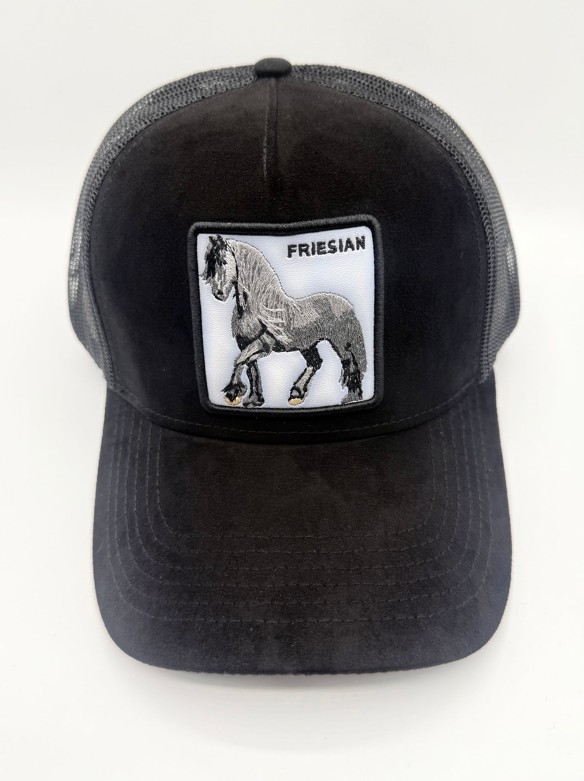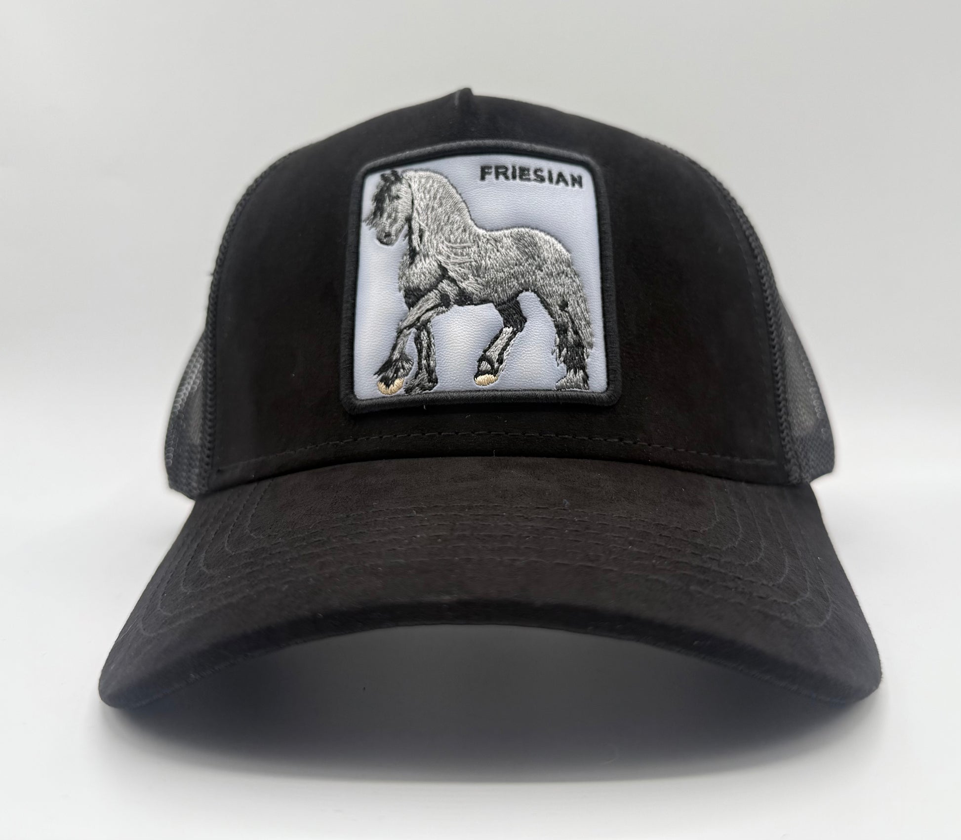 this was his second brand with a few line of horses. Black suede hat with leather white patch and its horse embroidered . Silk liner with Caballo fino branding